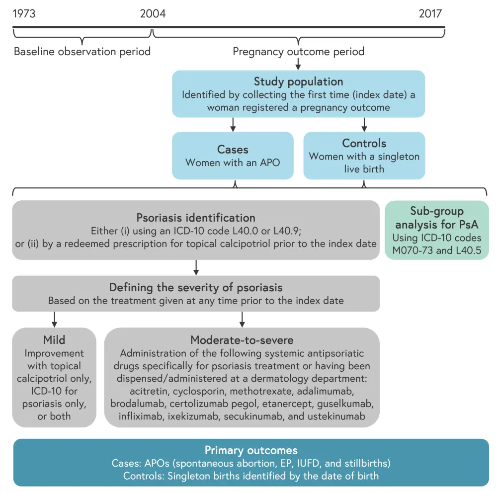 APO, adverse pregnancy outcome; EP, ectopic pregnancy; ICD-10, International Classification of Diseases 10th Revision; IUFD, intrauterine fetal death; PsA, psoriatic arthritis.