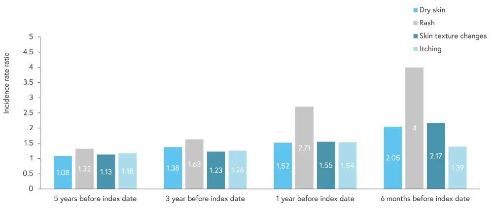 Figure 2. IRR of skin-related symptoms prior to the index date*