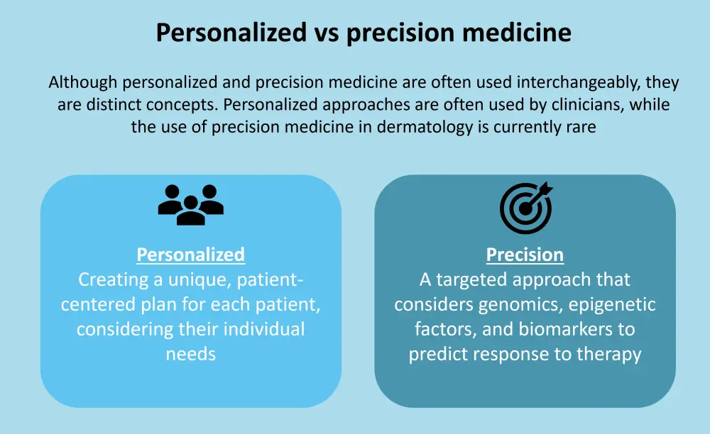 With an increasing number of therapeutic options available for the treatment of psoriasis, precision medicine could aid in the management of psoriasis and psoriatic arthritis (PsA).1 Although clinicians often use personalized medicine, it does not take into account the response to therapy.1 The differences between personalized and precision medicine are shown in Figure 1.