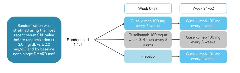 DISCOVER-2 was a phase III randomized, double-blind, placebo-controlled trial of adults with active PsA (Figure 1).