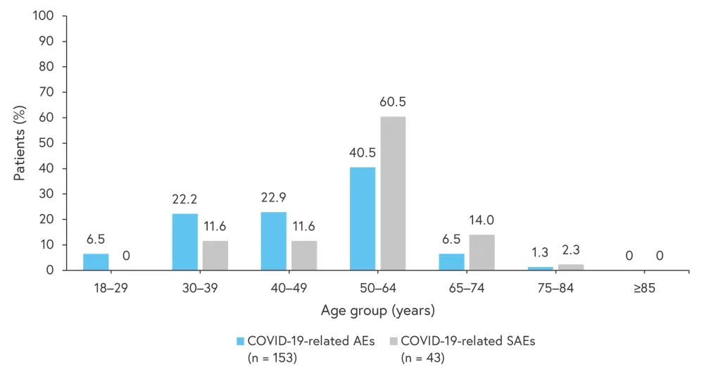 Figure 4. Age distribution of patients experiencing COVID-19-related AEs and SAEs*
