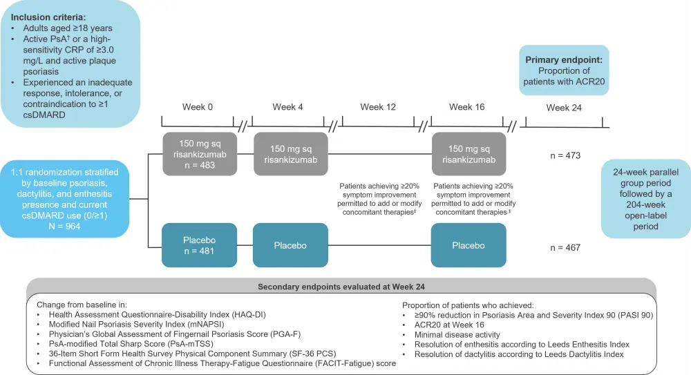 ACR20, 20% improvement in American College of Rheumatology score; CRP, C-reactive protein; csDMARD, conventional synthetic disease-modifying antirheumatic drug; PsA, psoriatic arthritis; sq, subcutaneous.