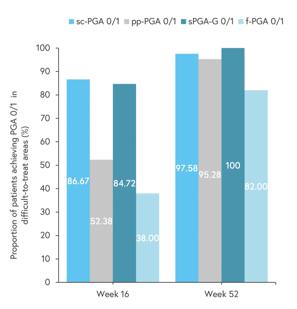 Figure 1. Proportion of patients achieving PGA 0/1 in the scalp, palms/soles, genitalia, and nails*
