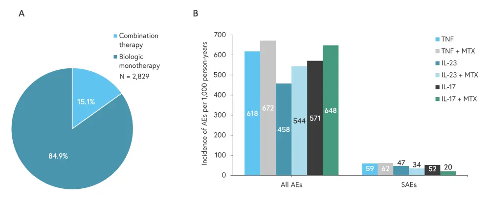 In moderate-to-severe cases of psoriasis, combinations of biologic drugs and conventional systemic drugs (e.g., methotrexate) are often prescribed.1 However, there is a lack of safety data available for these combinations.1