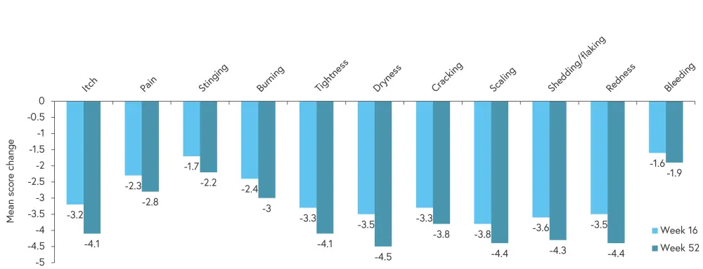 Changes were also observed in DLQI scores from baseline to Week 16 and Week 52: