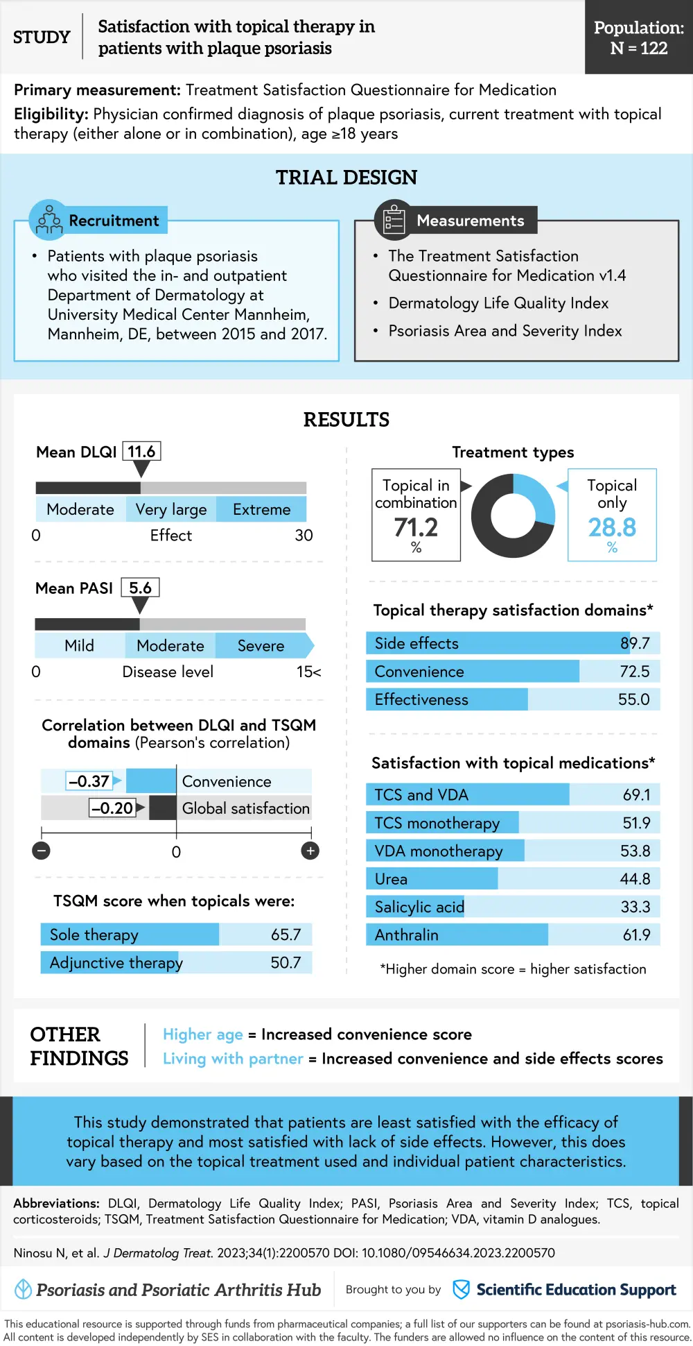 Satisfaction varied based on medication used and individual patient characteristics. This study is limited by the small sample size included and monocentric nature of the study. In addition, therapy data was self-reported by patients.1 However, these data provide insight into patient satisfaction with treatment. The authors concluded that satisfaction with topicals should be regularly evaluated as it may impact adherence.